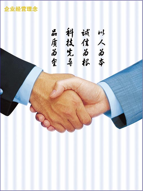 企业经营理念:以人为本 诚信为根 科技先导 品质为金