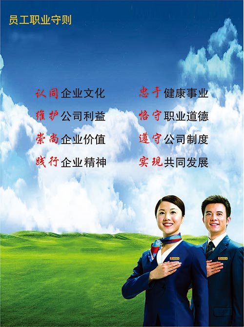 员工职业守则 认同企业文化 要求全体员工自觉学习企业文化,其行为举止符合企业文化规范,不做与企业文化相抵触的事。